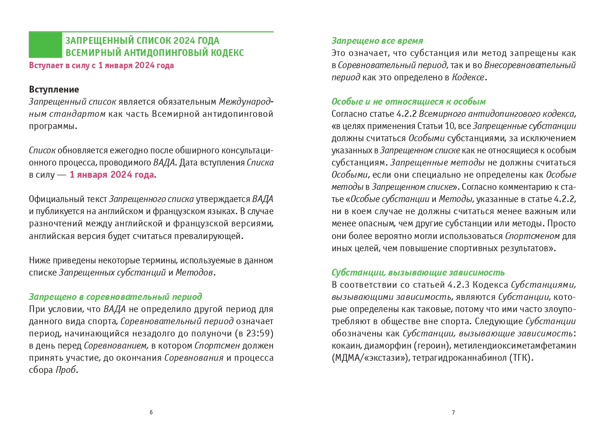Международный стандарт Всемирного антидопингового агентства «Запрещенный список 2024»,Приказ Минспорта России «Об утверждении перечней субстанций и (или) методов, запрещенных для использования в спорте»